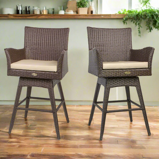 Barton 2 Pieces Swivel Bar Stool w/ Foot Rest Weather Resistant Fabric Cushion